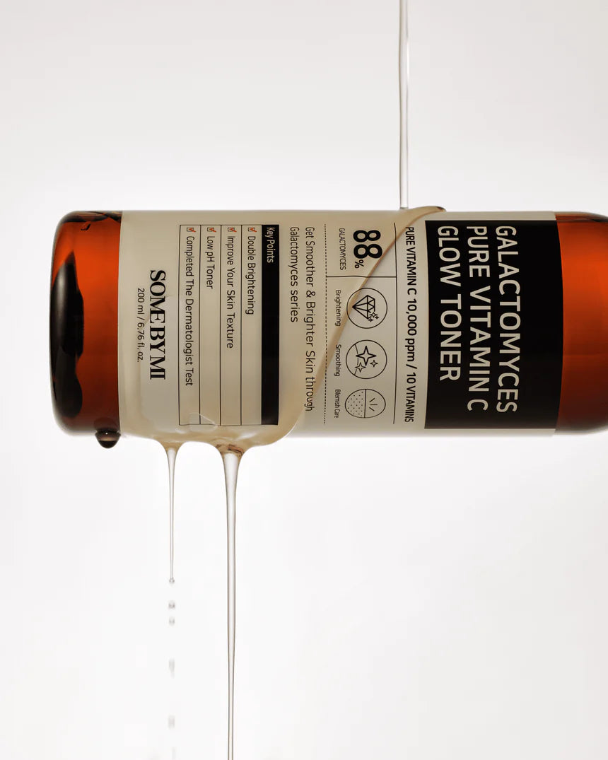 The SOME BY MI formula includes 1% pure ascorbic acid (vitamin C) to boost the brightening power and even out and protect the complexion from environmental damage. Vitamin C benefits also include fading dark spots, acne spots and other types of hyperpigmentation.